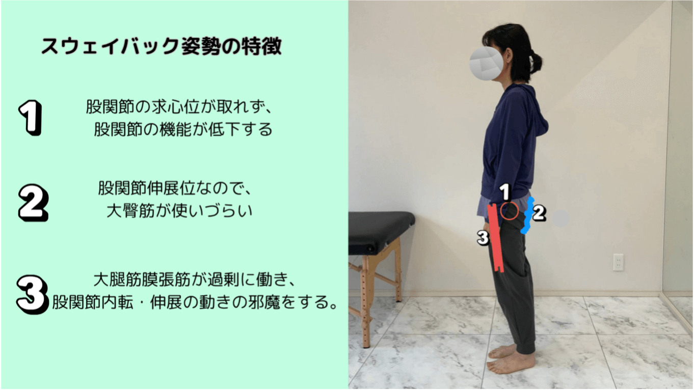 スウェイバック姿勢では、大腿筋膜張筋が過剰に働きやすくなる傾向があります。