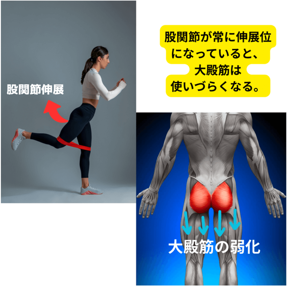2.常に股関節が伸展位にあるため、大臀筋が使いづらい