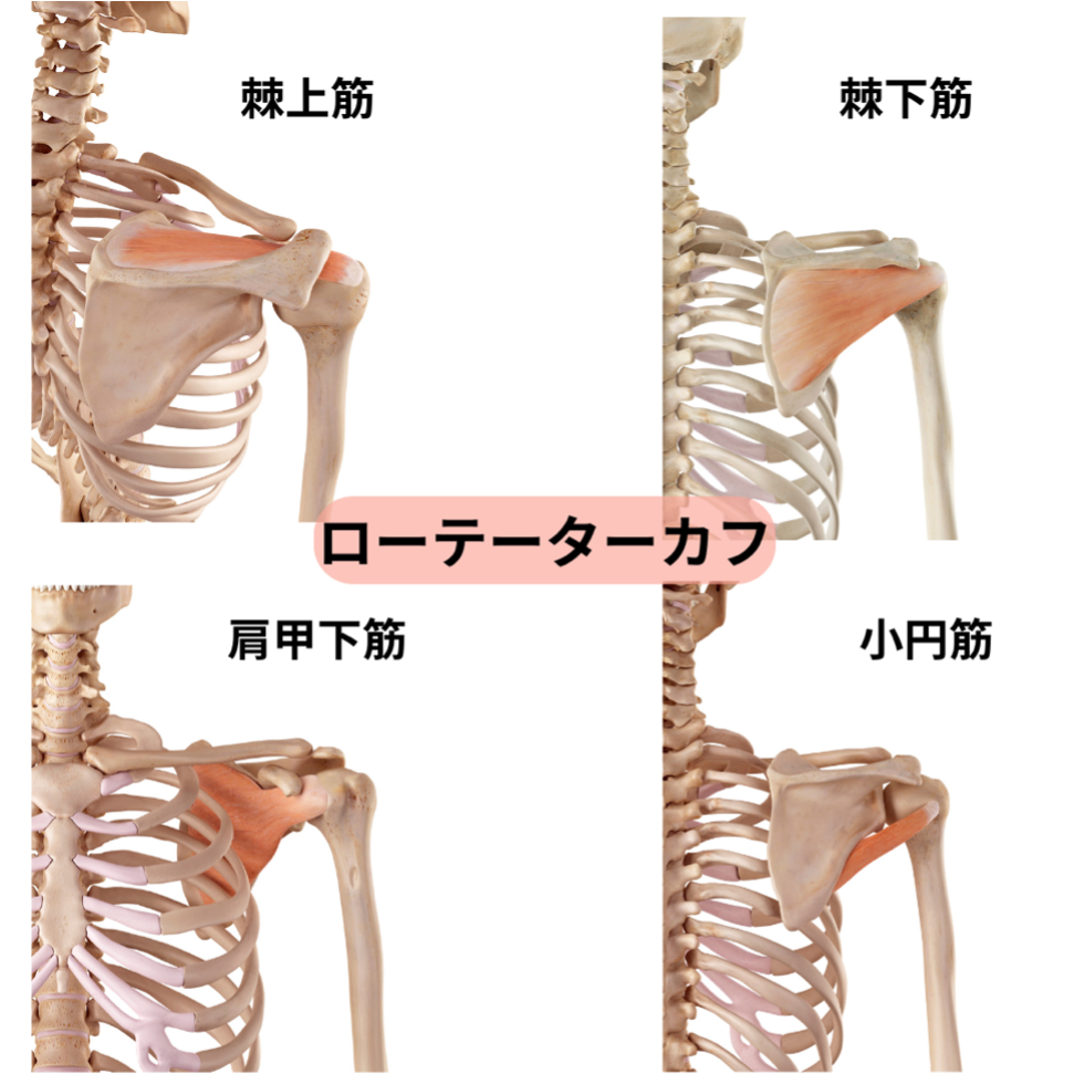 ローテーターカフ(棘上筋・棘下筋・小円筋・肩甲下筋)→関節の安定化