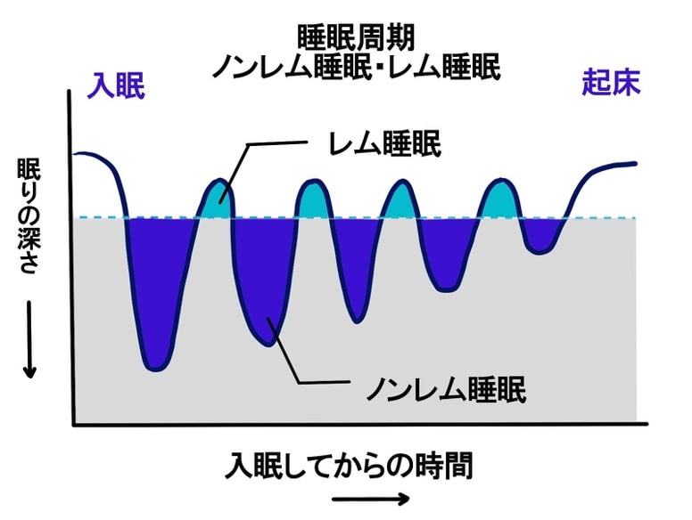 また、入眠後は一気に一番深い「ノンレム睡眠」に入りますが、このスムーズな入眠ができないと質の良い睡眠をとることができません。