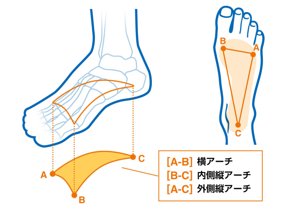 このバランスが崩れるとアーチが落ち込み、足全体が内側へと倒れていきます。